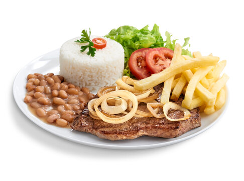 Peito de frango grelhado, arroz, feijão, batata frita e salada